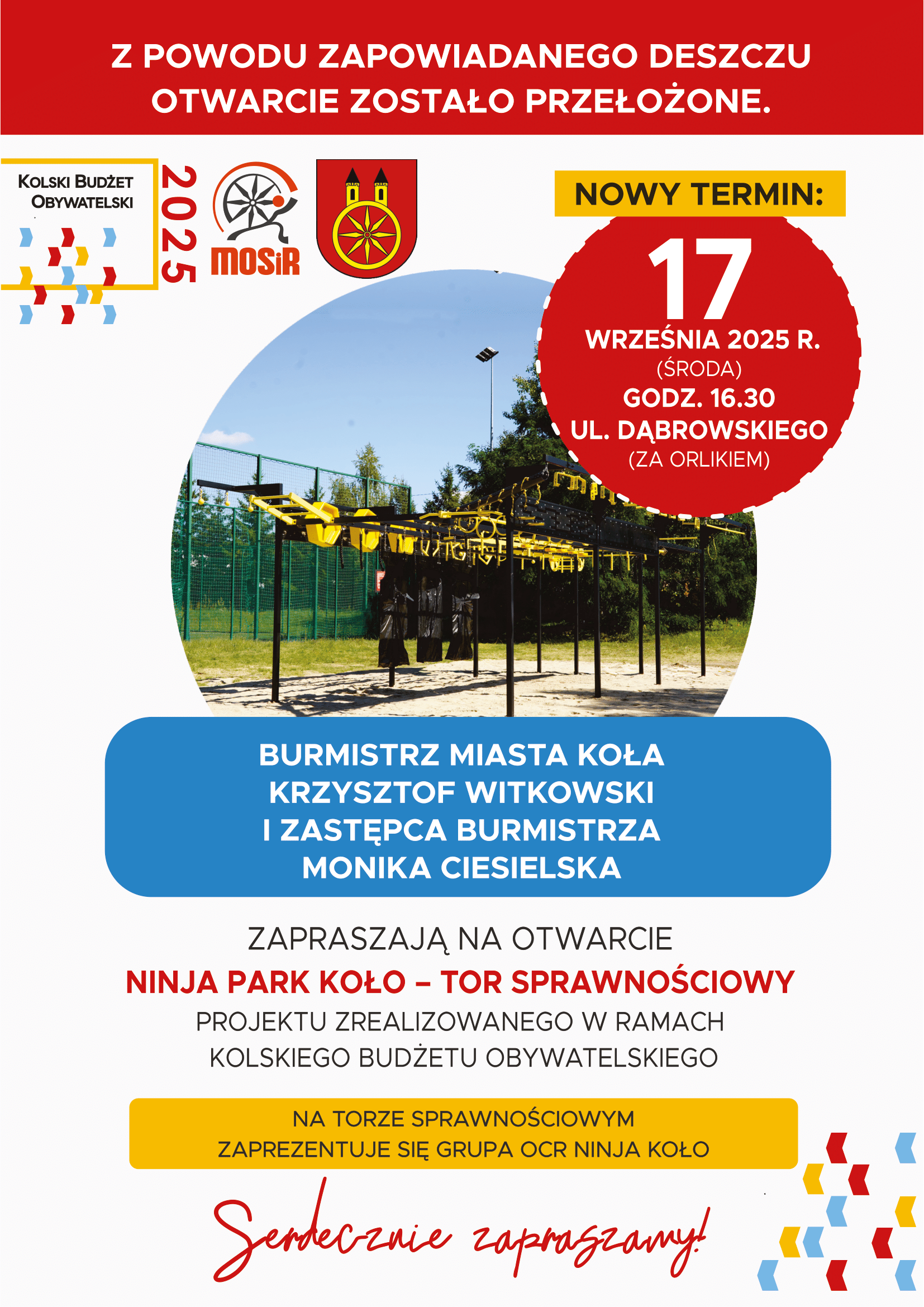 Uwaga: Z powodu zapowiadanego deszczu otwarcie Ninja Park Koło zostało przeniesione na 17 września na godz. 16:30